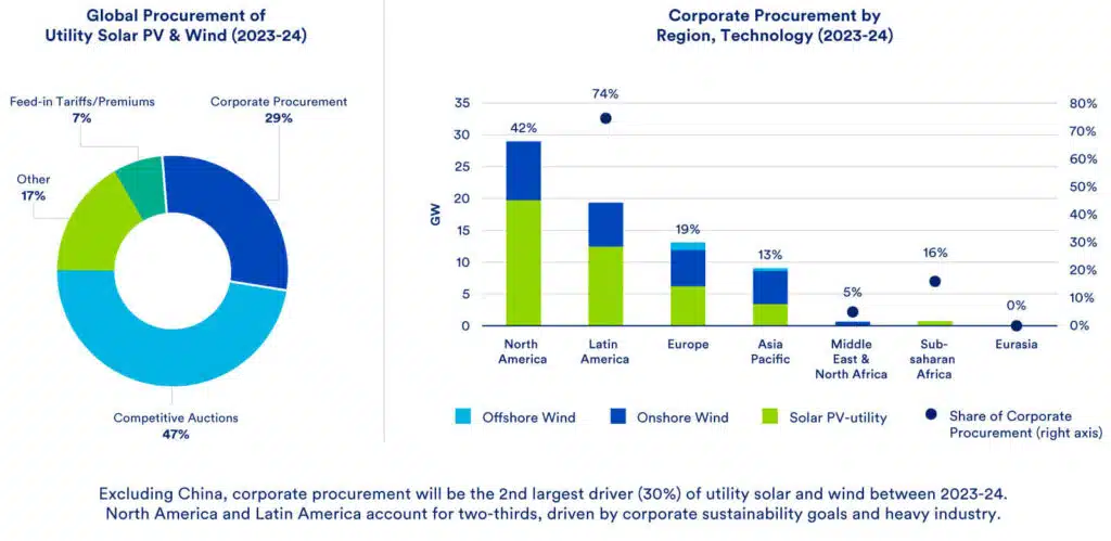The Greenhouse Gas Protocol is the little-known carbon accounting “bible”, used by over 90% of the Fortune 500 to calculate their carbon emissions and set Net Zero targets. Corporate procurement is a critical decarbonization lever. IEA numbers show that corporates account for 60% of global electricity consumption and, outside of China, their procurement will drive 30% of global renewable capacity additions in 2023-24. A good foundation, but plenty of room for improvement, particularly in Asia and Europe.