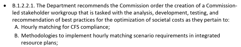 The MN DOC’s April comments clarify their recommendation that hourly matching requirements for compliance should be explored in a stakeholder working group because, at the time, they had not been able to publicly analyze the Xcel modeling published in the docket as described above. Now that the MN DOC has submitted their May supplemental comments addressing the Xcel modeling, we will continue to monitor the docket and ongoing implementation process to see whether the MN PUC will consider an hourly matching standard as initially proposed by the MN DOC.
