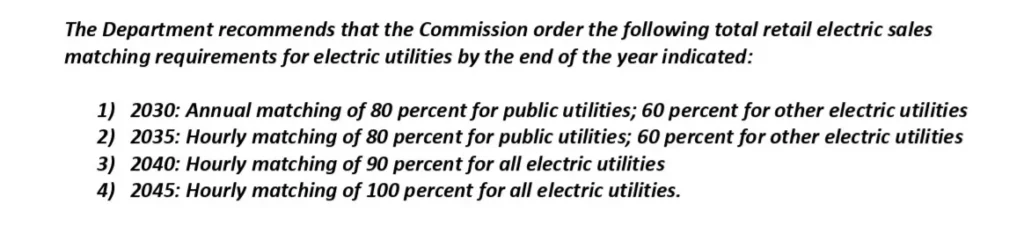In January, the Minnesota Department of Commerce (MN DOC) submitted a public comment recommending the Public Utilities Commission (the body that will be developing the rules) to require utilities to comply with Minnesota’s new law through hourly matching of clean electricity supply and demand on a timeline that increases in rigor and flexibility for smaller utilities during the first decade of compliance.