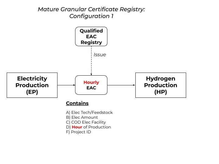 It is important to underline that the best-case scenario for hourly matching of projects — and the ecosystem tracking systems are building towards — includes a registry that directly issues hourly EACs, allows EACs to be traded on a market, and retires those hourly EACs for beneficiaries with oversight from an entity like the US Treasury. That world is coming, and EnergyTag’s Configuration 1 lays out how that can be standardized and scaled. The established registries developing this system have said full readiness is just a few years away, and the most innovative solutions may even get there faster. Their development will be key even beyond 45V implementation; registries with granular certificate readiness will provide the credibility and transparency necessary to validate clean electricity and low-emissions claims undergirding global trade of clean products and compatibility of international climate and trade policies.