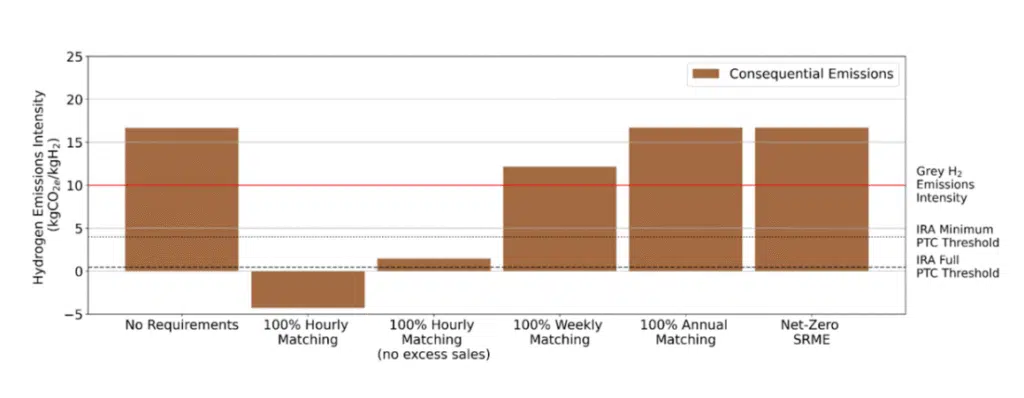 Figure 1 – System levels of emissions of “Clean” Hydrogen by Accounting Method (Source: Princeton).