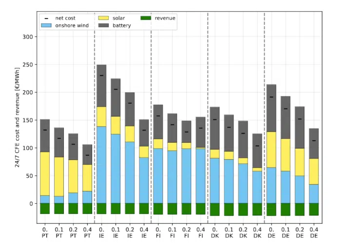 Figure 4 – More flexible demand reduces the cost of 24/7 CFE goals (Source: TU Berlin).