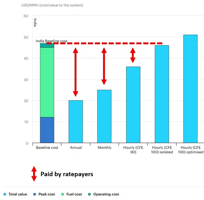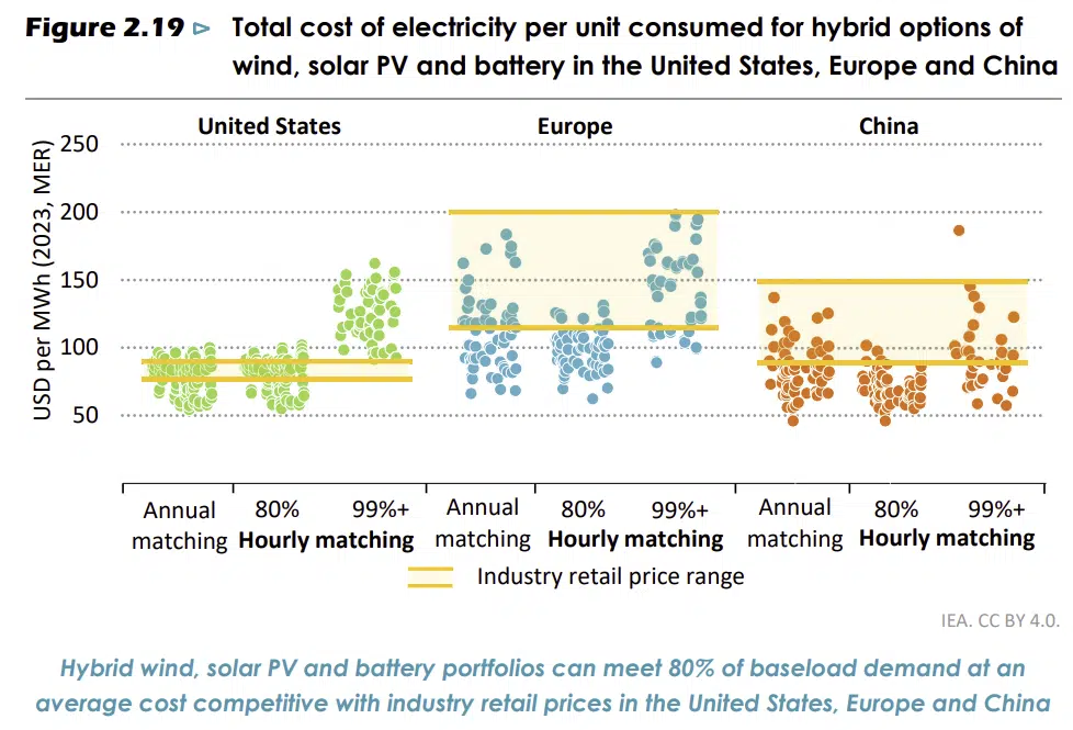 As numbers from the IEA above show, hourly matching of hybrid renewables (wind, solar, and batteries) is becoming cost-competitive today with standard industrial retail electricity tariffs and annual matching up to ~80% precisely because they both hit low-hanging fruit before doing important firming to get rates up to 99%+. Arguing against hourly matching is essentially arguing that renewables, storage, and flexibility will never be up to the task of delivering firmed clean power, and that we will always need fossil fuels for that. The IEA analysis casts doubt on this narrative. These hybrid renewable deals are emerging (e.g,. in Australia, India, or the US) and need to scale much more. Hourly matching for large consumers in the GHG Protocol can help incentivise these products and cover the premiums that still exist today.